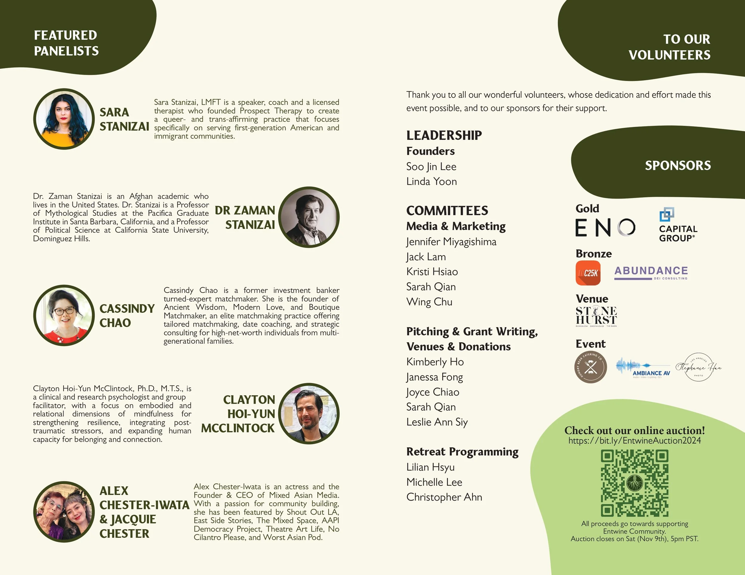 Should you have any allergies or dietary restrictions, please email support@entwinecommunity.org no later than 10/24/24.